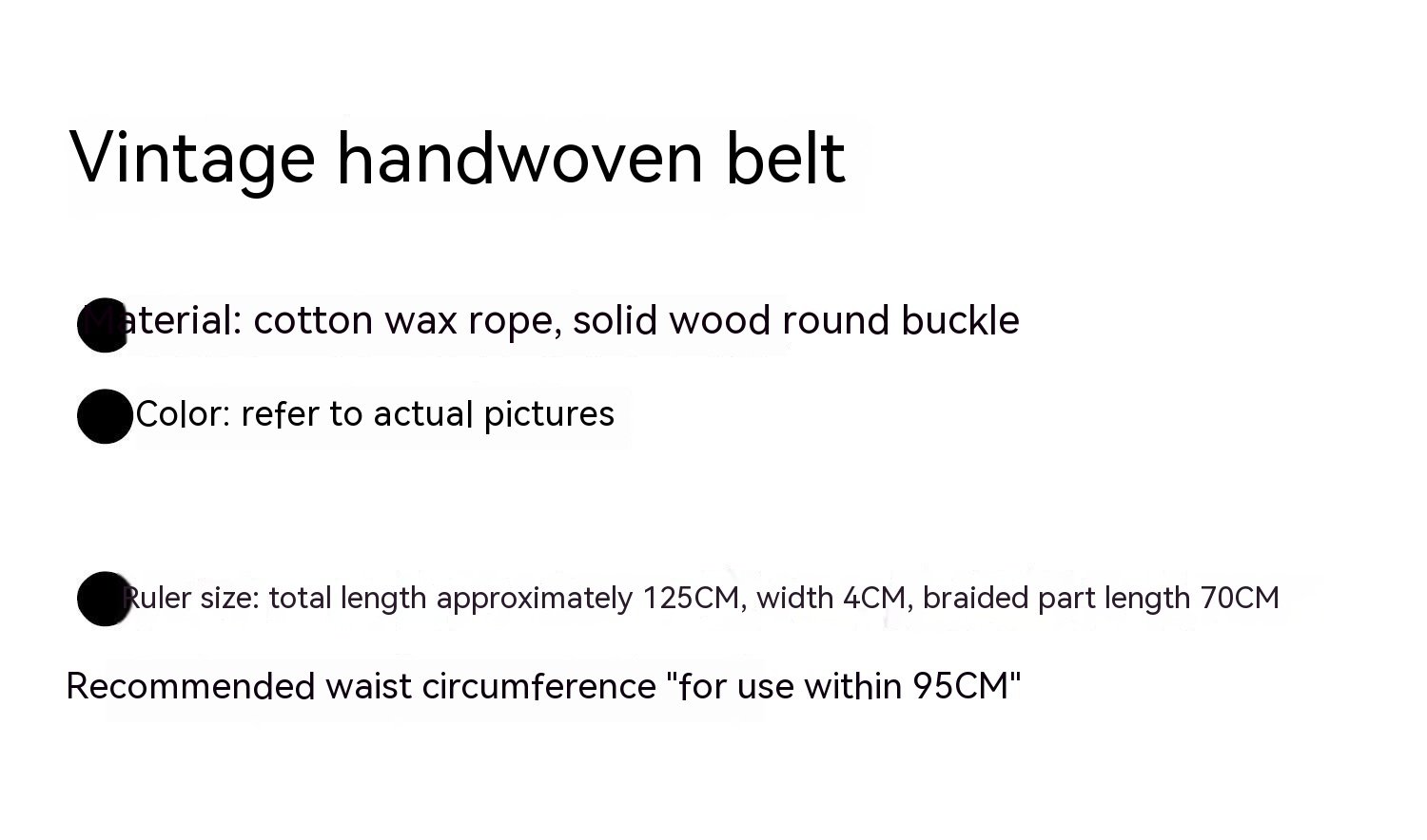 Size: Approximately 125CM in length and 4CM in width, with a woven part of 70CM in length