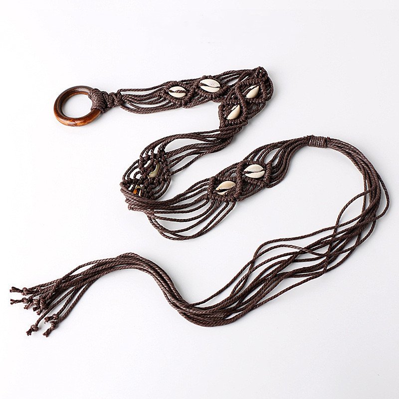 Ethnic Style Woven Wide Belt Women’s Dress Casual All-match Decorative Tassels Rope Waist Chain Bohemian Accessories