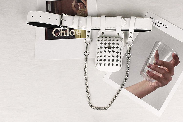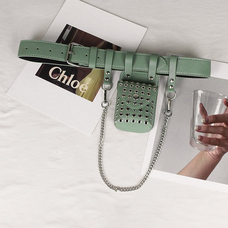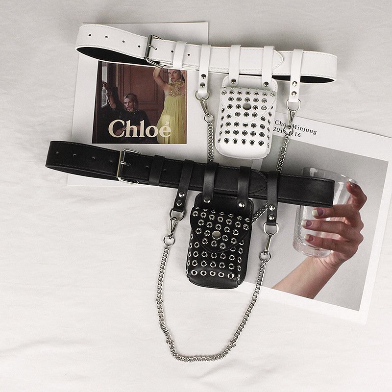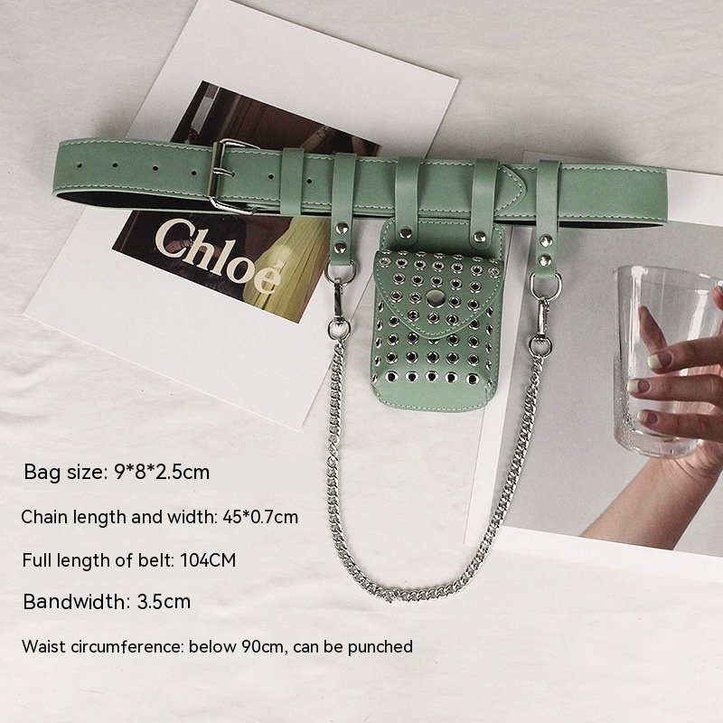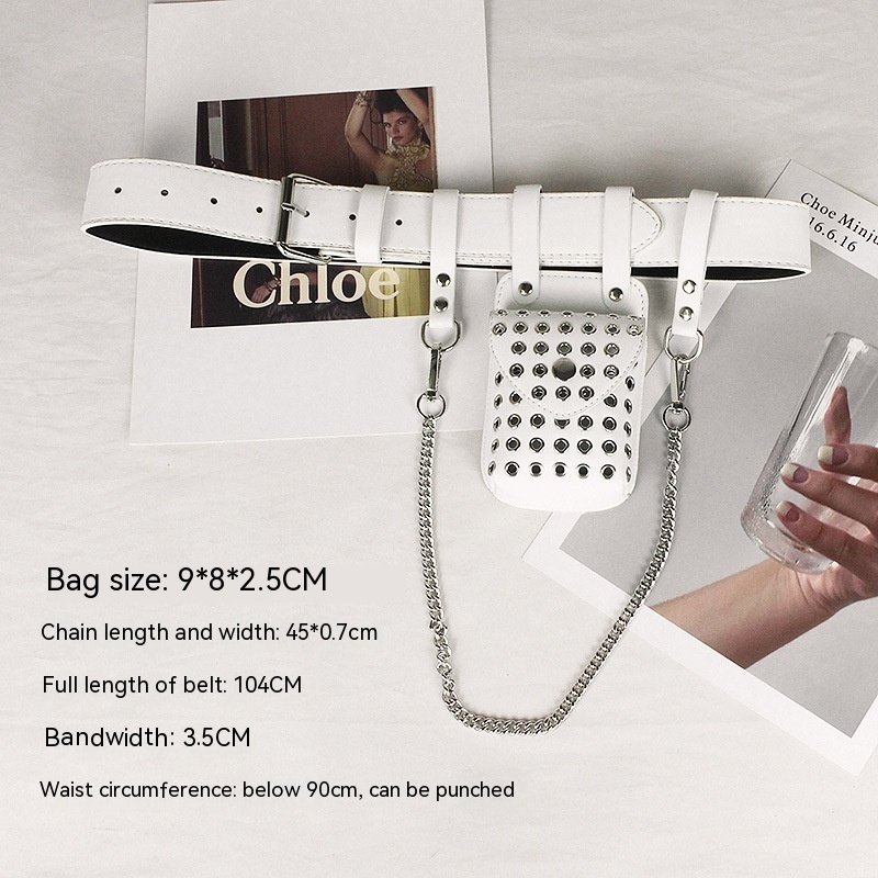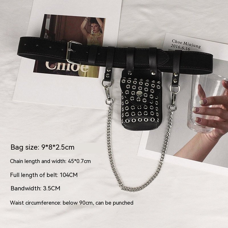 Punk Belt Bag Belt Chain Decoration Rivet Hollow-out Small Bag Belt
